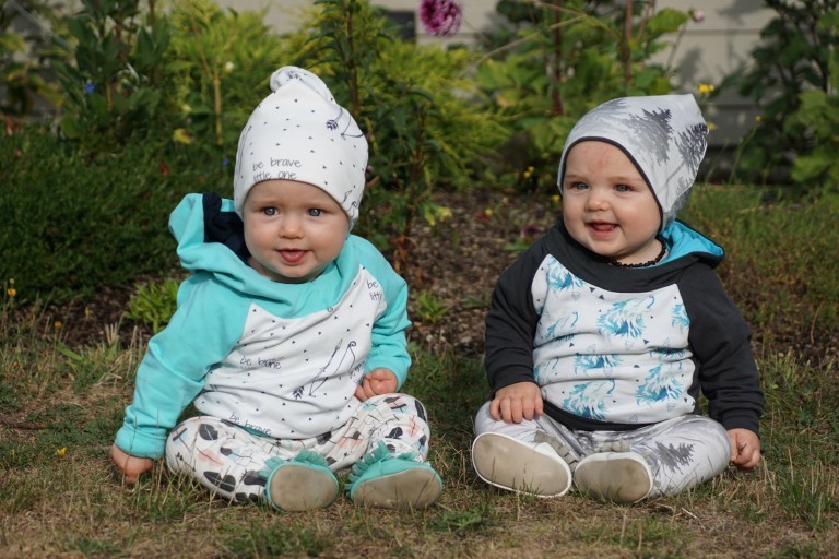 A month later, when I knew I loved her stuff, I decided to order the twins hoodies & legging sets. She offers custom orders, and I was able to choose which combo of fabrics I wanted! Which sounds lovely, except when I wanted them all! Our order arrived and I was in love! They were adorable and so cozy!