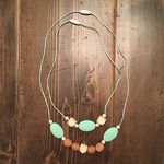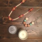 A couple months ago, I came across Soleil Handcrafted who is a local artisan who is making beautiful teething necklaces and delicious hand poured candles. Y’all know my love of supporting small and local so I was excited to order my 1st necklace from her. The 1st one I purchased was her Beachy Keen necklace, and it seriously reminded me of the beach – the wood beads combined with the turquoise (my favorite) and cream was so beautiful. It’s super long and goes with everything.